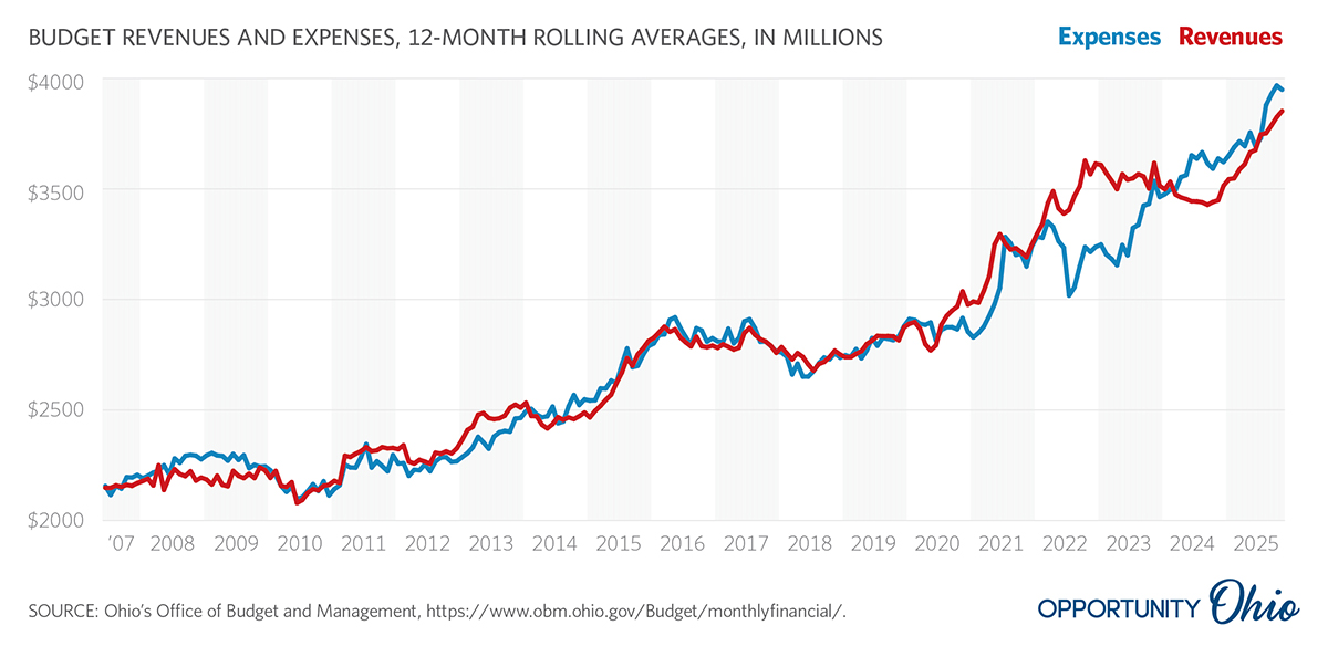 Ohio Spending and Revenues See our monthly report on Ohio’s spending habits and key sources of revenues to fund government. Share: Twitter Facebook Google+